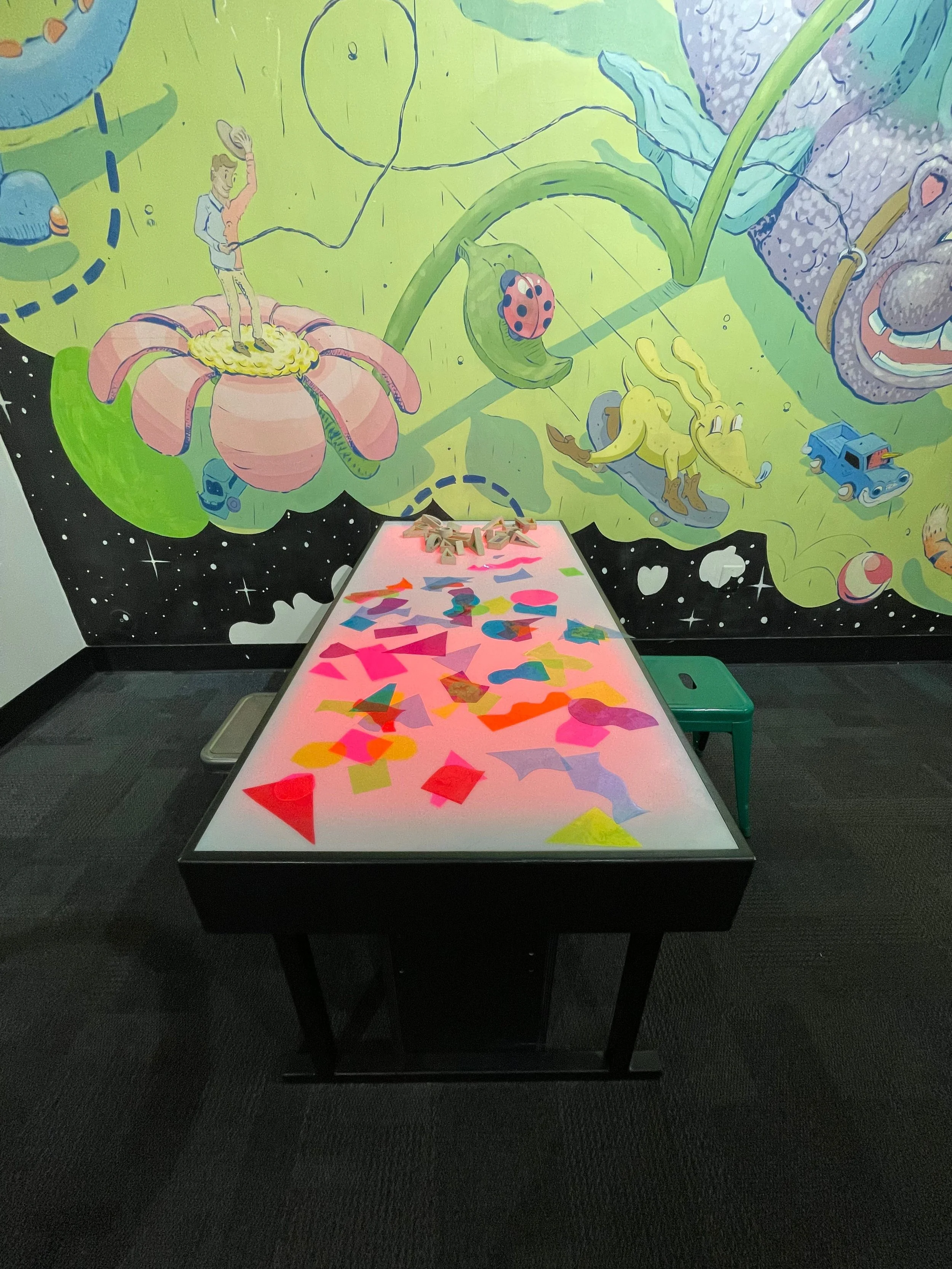 New exhibit elements were designed to fill newly available space in one of the Glazer Children’s Museum’s original exhibits. Elements included a new HDPE weaving wall as well as two lightboxes. Both lightboxes designed and fabricated in-house at GCM, and allow guests to change the color of the lightbox.